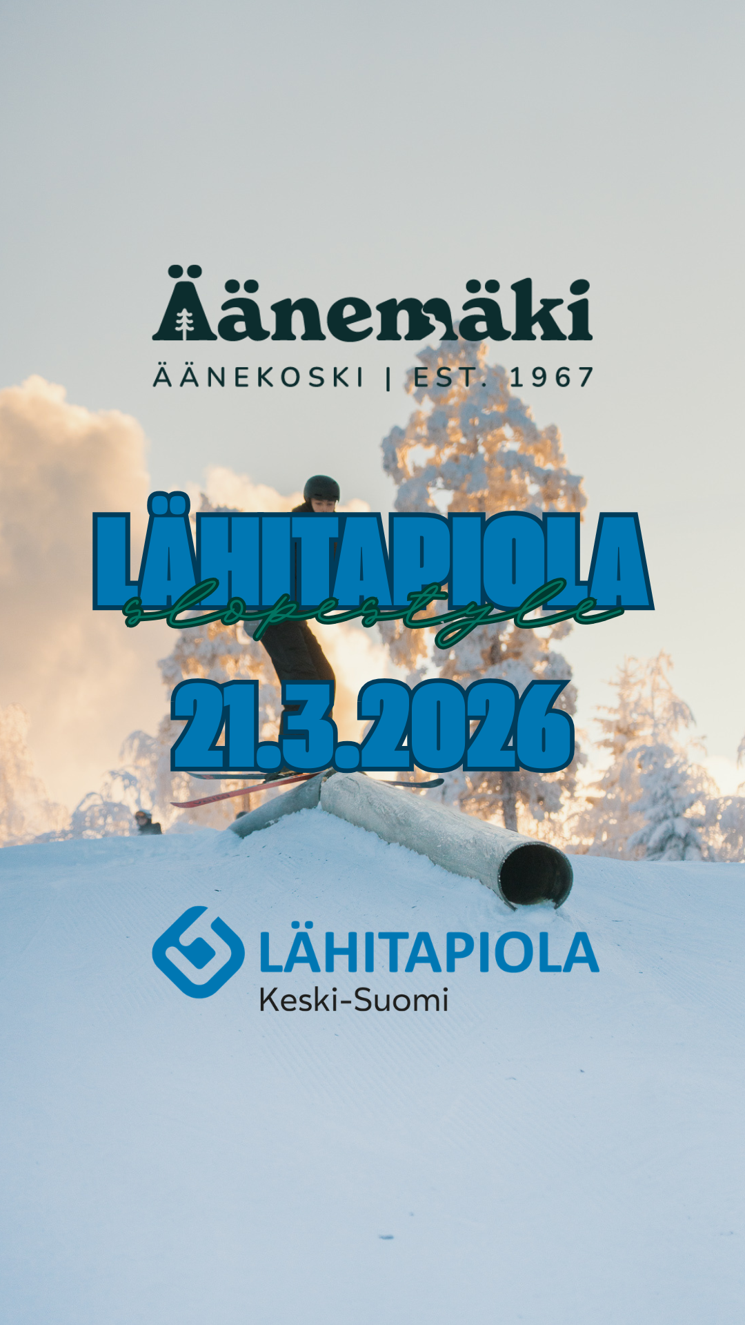 LähiTapiola Slopestyle-kilpailu Äänemäessä sunnuntaina 23.3.2025 klo 13:00 alkaen!